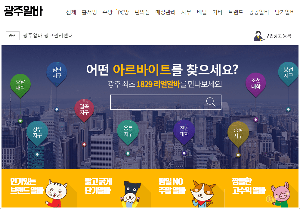 카테고리 메뉴에서 "광주 알바"를 선택하시면 광주지역에 있는 다양한 아르바이트 정보를 검색하실 수 있습니다.