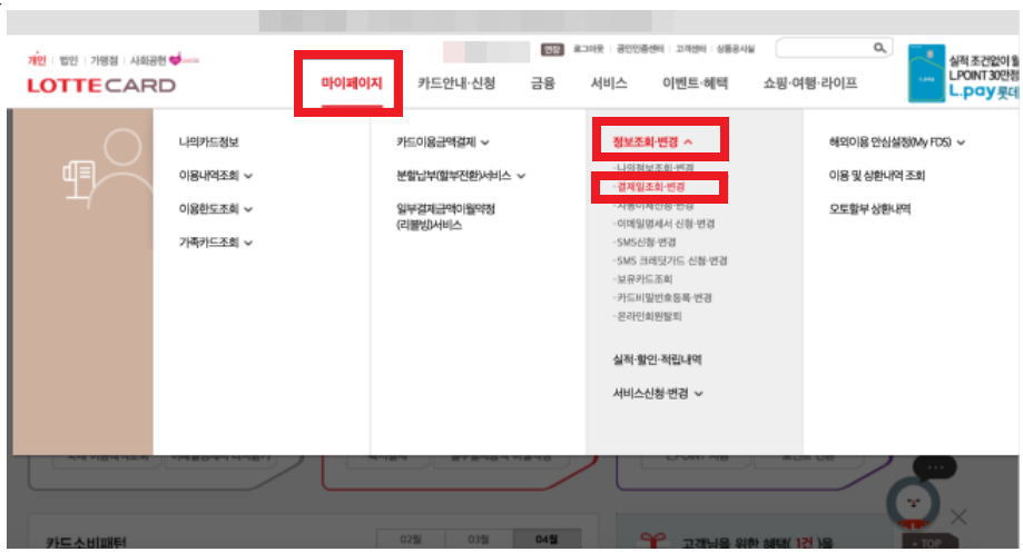롯데카드 결제일별 이용기간 결제일 변경 방법 알아보기