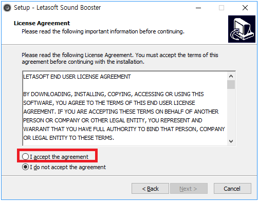 사운드 부스터 설치 창이 나오면 'Next'버튼을 선택하여 다음 단계로 넘어갑니다. 그러면 오른쪽의 사진처럼 창이 나오는데 '위쪽을 체크'하신 다음에 다음 단계로 진행해줍니다.