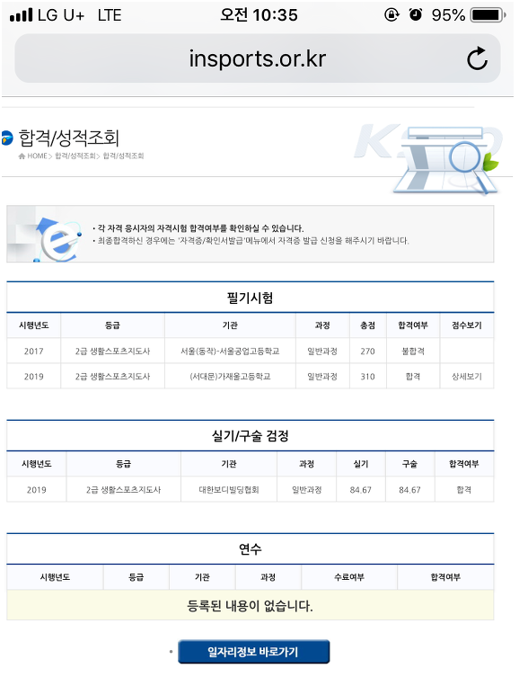저는 이렇게 생활스포츠지도사 2급 보디빌딩 구술, 실기 시험을 합격했습니다!! 정말 너무 뿌듯하고 좋더라고요 ㅋㅋ 이제 연수와 현장실습만 받으면 자격증이 발급이 되는데연수 때문에 이번 여름휴가는 없어지게 됐어요 ㅠㅠ