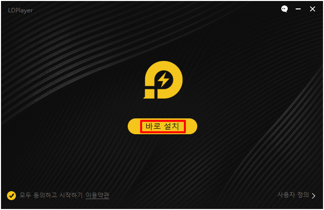 크롬(Chrome)브라우저를 사용해서 다운로드 버튼을 선택하시면 바로 엘디 플레이어 설치 파일을PC에 다운로드 받으실 수 있습니다. 설치 파일을 실행시키시면 LD 플레이어를 설치할 수 있는 아래와 같은 창이 나타납니다. 여기에서 "바로설치"버튼을 선택해서 진행해주세요.