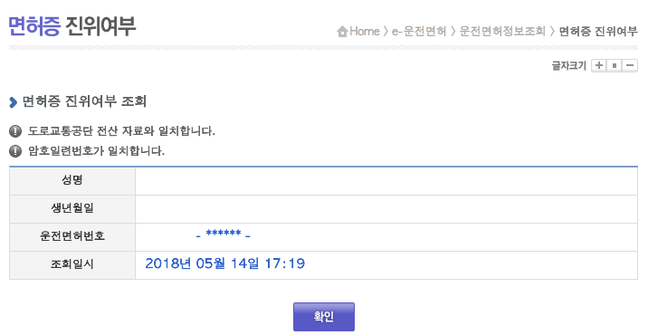 예를 들면 : 면허증 진위여부 조회가 있습니다.