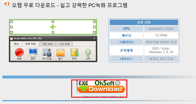 오캠 공식 홈페이지