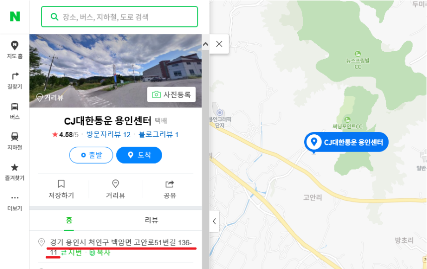 용인 hub의 위치는 "경기 용인시 처인구 백암면 고안로51번 길 136-11"입니다. 급히 택배를 받아야 하는 사정이 생기신다면 직접 방문 수령도 가능합니다. 대신에 CJ대한통운 고객센터에 미리 연락을 하신 후, 신분증을 지참해서 방문을 해야 합니다.연락을 하지 않고 방문할 시 택배를 찾는 동안 대기를 할 수도 있고,이미 택배가 배송을 시작했을 수도 있기 때문입니다.(우리나라의 택배시스템은 정말 빠르기에 늦어도 일주일 안으로 도착한다고 합니다.)