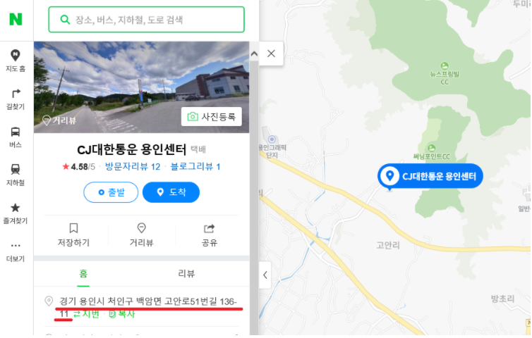 용인 hub터미널은 현재 "경기도 용인시 처인구 백암면 고안로 51번 길 136-11번지"에 위치해 있습니다. 정말 급하게 택배를 받아야 하는 상황이 생기신다면 방문 수령도 가능한데요. 대신에 방문 전 CJ대한통운 고객센터에 미리 연락을 하셔야 합니다. 그래서 기다리는 번거로움을 덜 수 있고, 혹시라도 모를 출고 상황을 막을 수 있습니다. (신분증을 꼭 챙겨가야 합니다.)