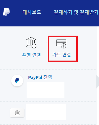 그러면 아래와 같은 화면이 나오는데, 여기서 오른쪽 하단에 있는 "카드 또는 은행 연결" 메뉴를 선택해줍니다.