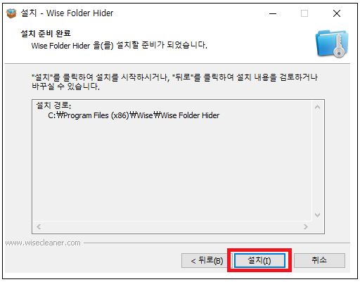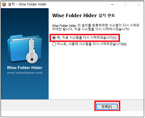 Wise folder hider 설치가 완료되었습니다.완료하신 다음 재부팅을 해주세요!