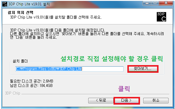저장할 위치를 따로 지정하고 싶으시면 "찾아보기"를 꾸욱!! 하신 후"다음" 버튼을 꾸욱!!