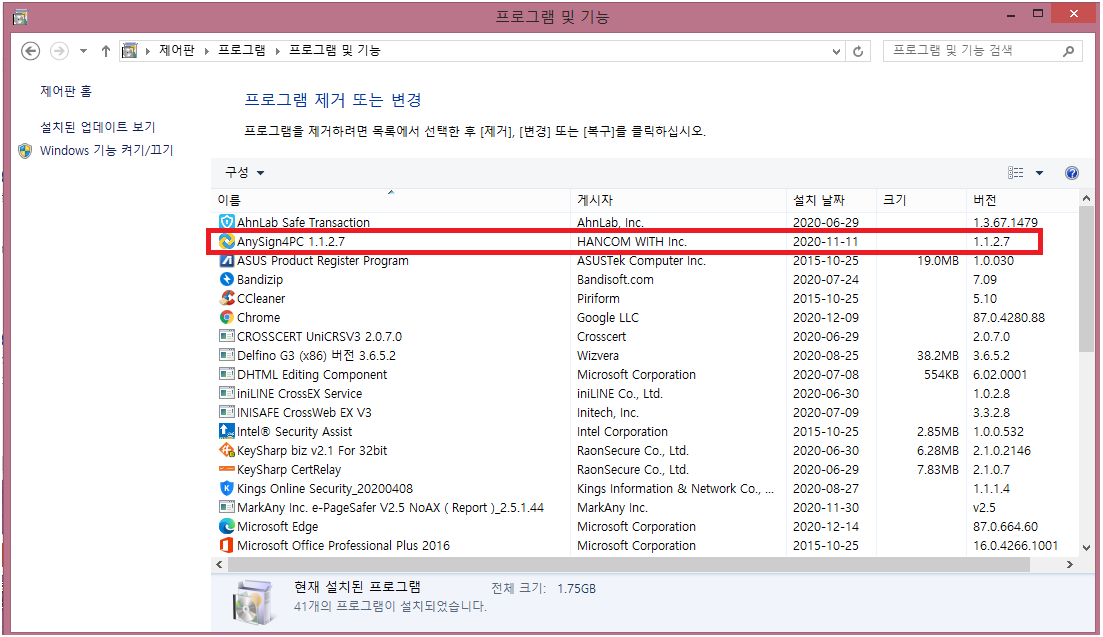 오늘은 Anysign for pc 정체와 정보 삭제 방법에 대해서 알아봤습니다.