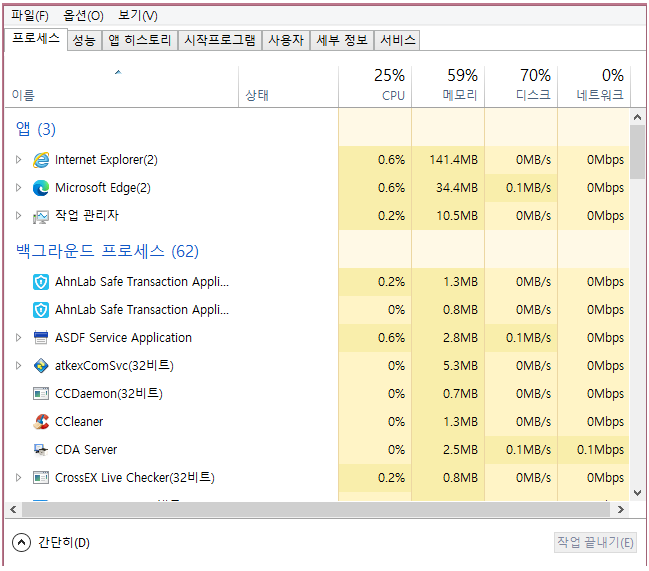 다시 Ctrl+Alt+Del 버튼으로 작업 관리자 창을 열어보시면 보시는 바와 같이 Anysign for pc 프로그램이 삭제되어 보이지 않으실 겁니다.정말 간단하죠^^?