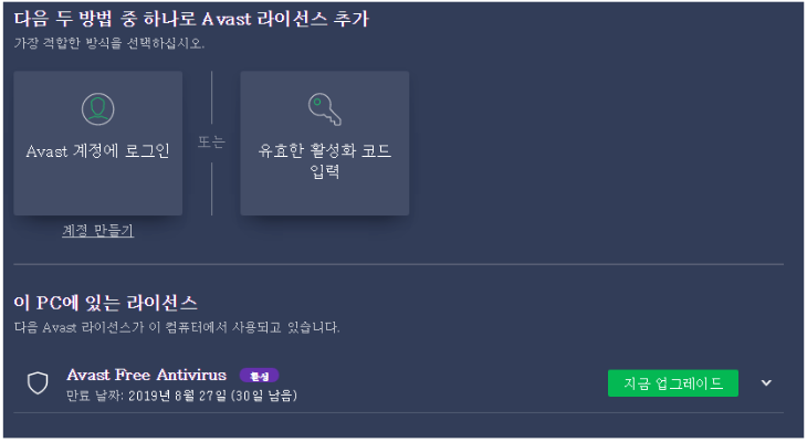 라이선스 부분을 보시면 만료 날짜가(30일 남음)이라고 나와있습니다. 프리 버전인 만큼 어베스트 계정 로그인만 해도
