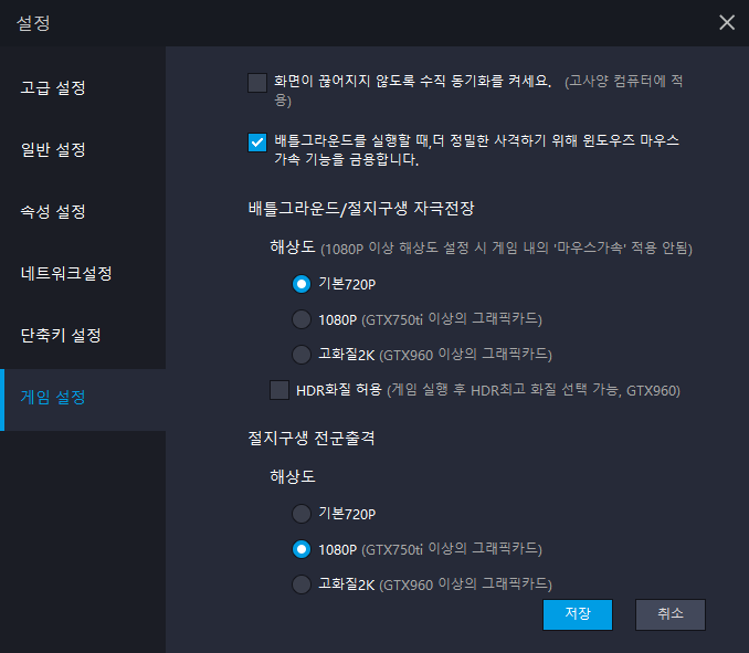 그리고 게임 설정으로 가시면 모바일 배틀그라운드/절지 구생 자극전장과 절지구생 전군 출격해상도를 고화질 설정이 가능합니다.