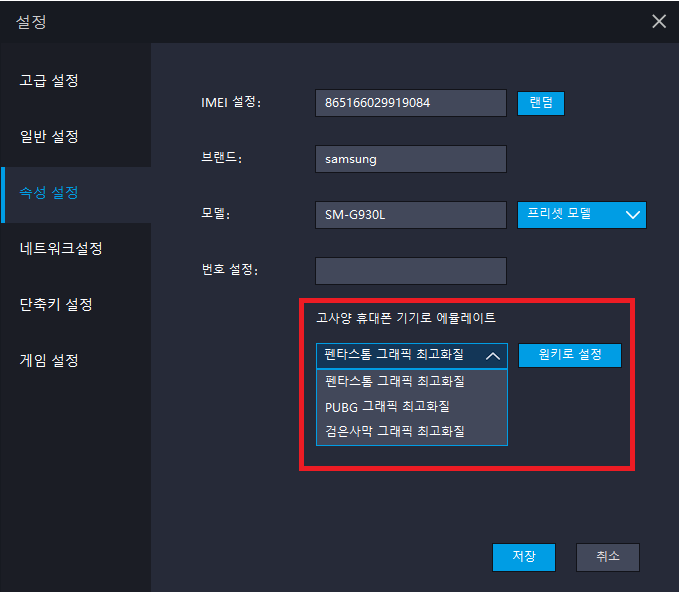 속성 설정을 들어가 보시면 펜타 스톰, 모바일 배틀그라운드, 검은 사막은그래픽 최고 화질로 설정이 가능합니다.