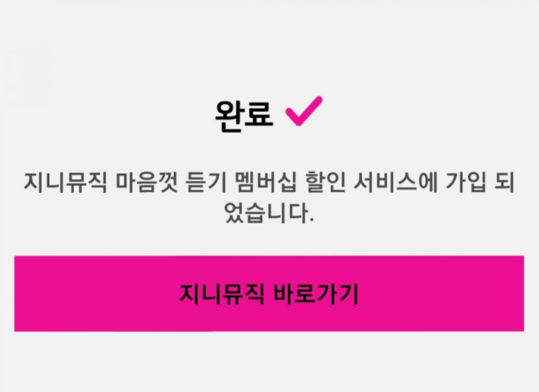 아래의 화면이 지니뮤직 부가서비스가 가입된 화면입니다. 이제 본인 휴대폰 인증이 된 계정을 통해서 지니뮤직 어플로 음악을 즐기실 수 있습니다.