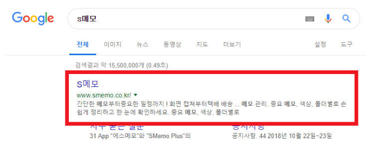 먼저 구글 검색창에 "S메모"라고 검색하신뒤 공식 웹사이트에 접속을 해주세요.