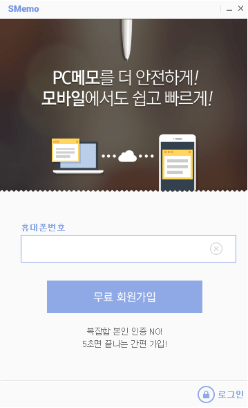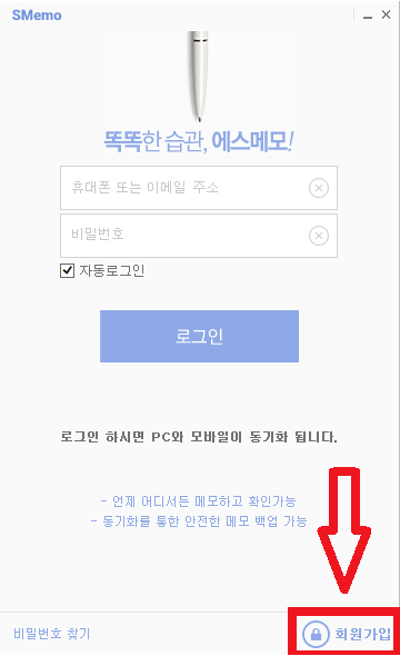 S메모 프로그램이 실행되면 가장 먼저 로그인을 해주셔야 합니다. 로그인을 해야만 자신이 적어놓은 쪽지의 내용이 클라우드에 저장돼서 다른 컴퓨터에서도 확인이 가능하기 때문입니다.