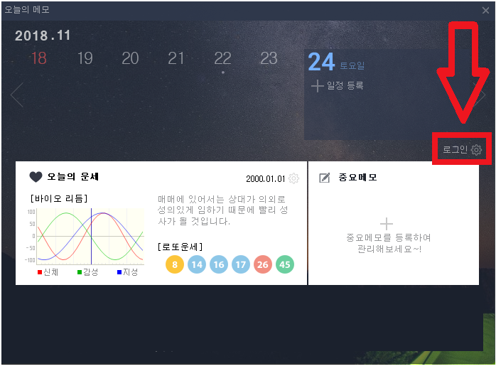 정상적으로 로그인하신 후에는 메모 기능을 사용해보실 수 있습니다. 내가 적고자 하는 내용이나, 해야 할 일, 필요한 내용 등을 메모장에 적어주시면 됩니다.